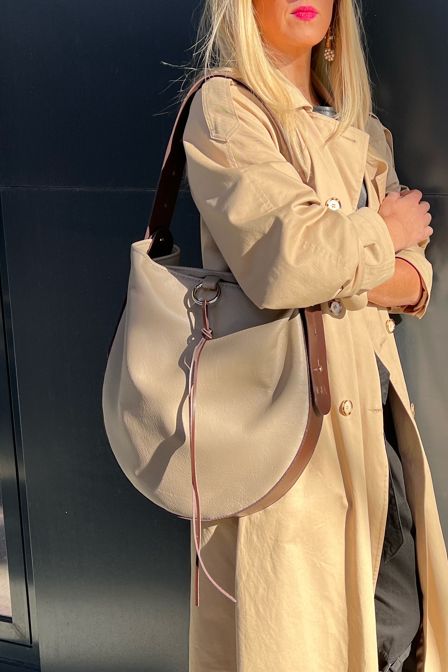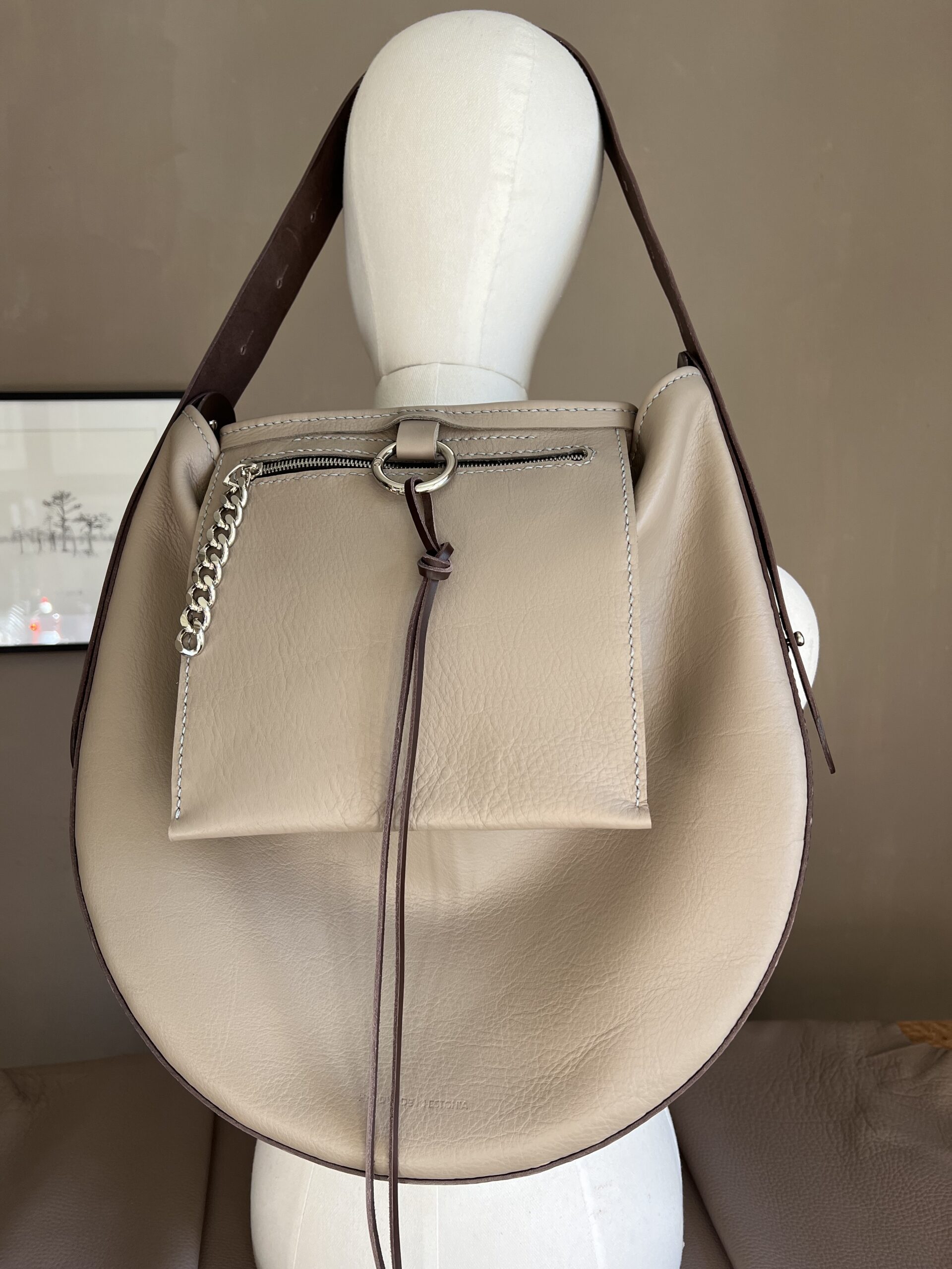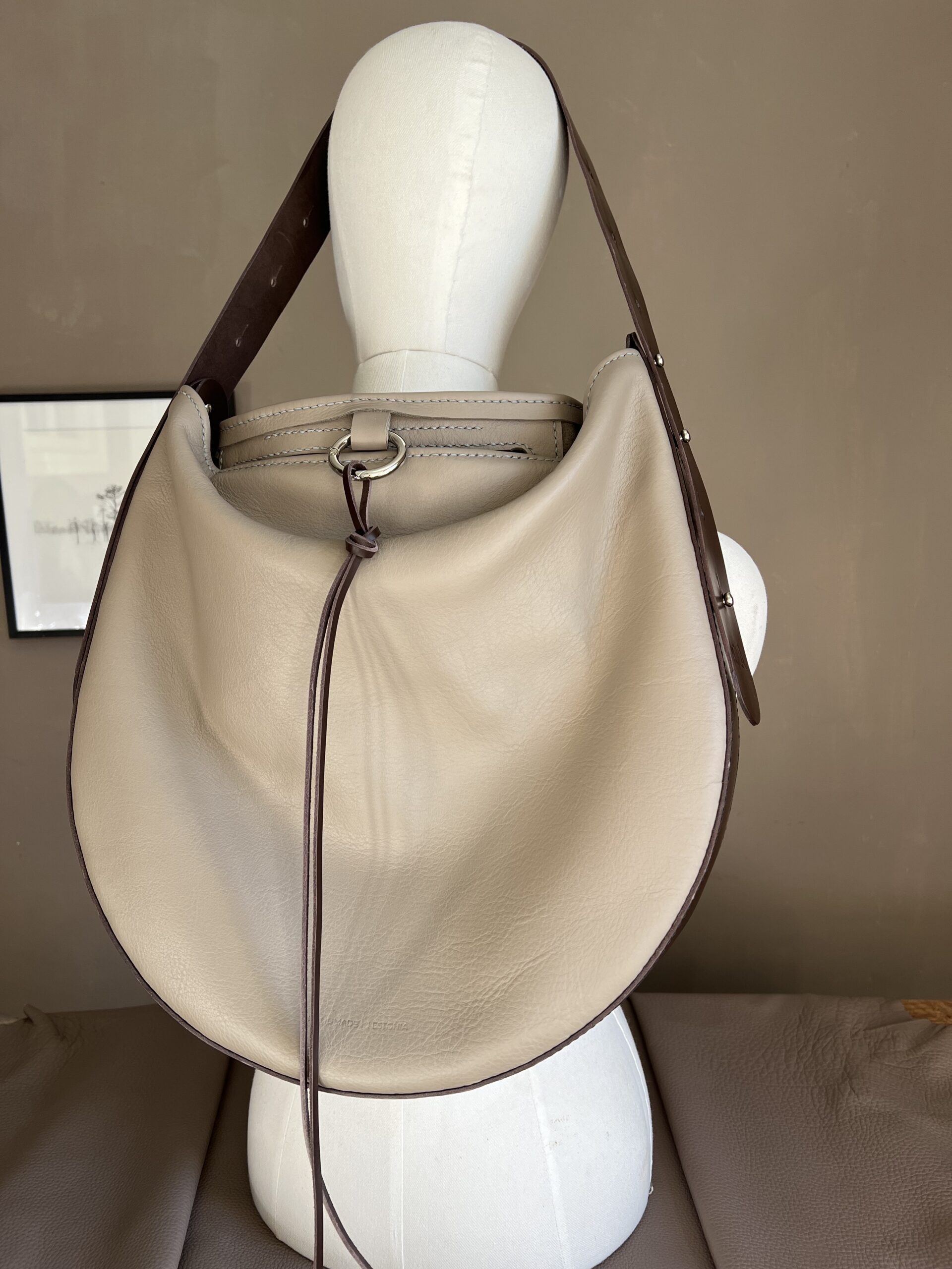 The structure of the bag combines a firm, supportive base with a soft leather body. This contrast creates a balance of form and function—strong in shape, yet gentle in feel.